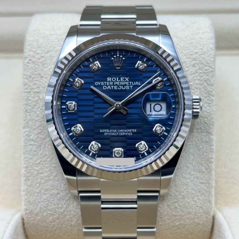 商品状態:新品ロレックス デイトジャスト 126200 ブルー フルーテッドモチーフ ジュビリーブレスレット36mm
