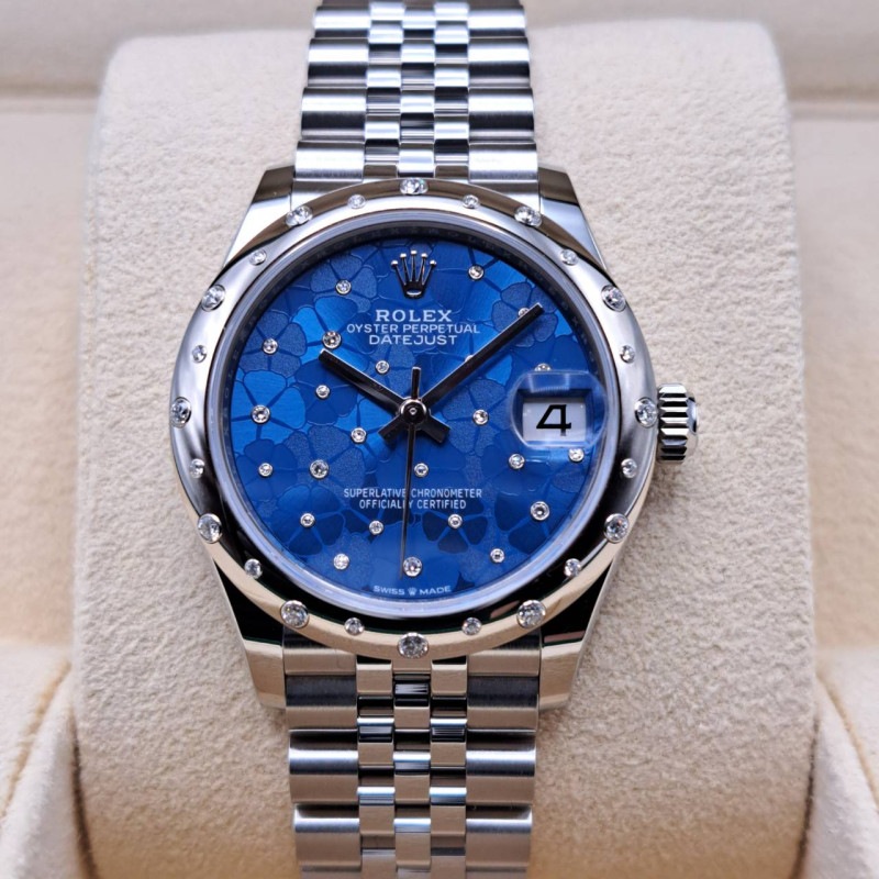 商品状態:新品ロレックス デイトジャスト 278344RBR アズーロブルー フローラルモチーフ ダイヤ入り ジュビリーブレス 31mm