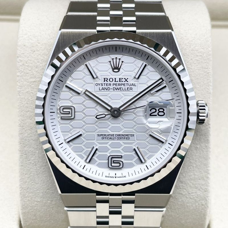 商品状態:新品【保証書日付2026年1月!】 ロレックス ランドドゥエラー 127334 インテンスホワイト ハニカムモチーフ 40mm